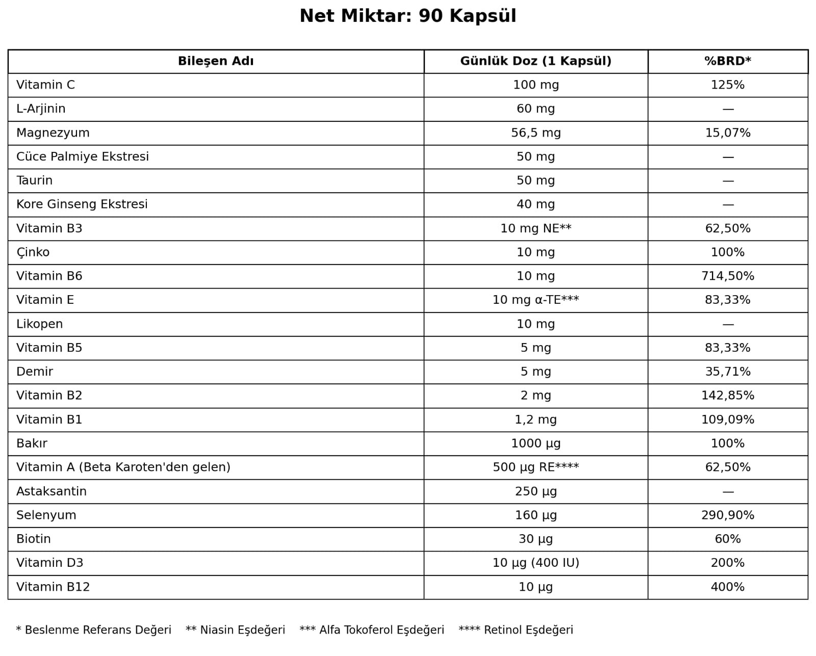 11 yaş ve üzeri yetişkinler için uygun olan ürün, kronik rahatsızlığı bulunan, ilaç kullanan, hamile veya emziren bireyler tarafından kullanılmadan önce mutlaka bir uzman görüşü alınmalıdır.