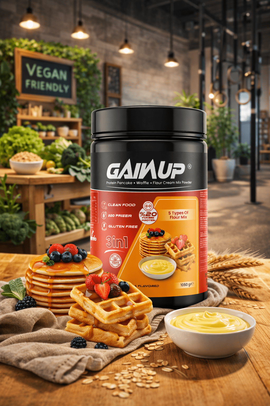 Gainup Pankek-Waffle-Flour Cream Mix Powder 1050gr Vanilya Aromalı