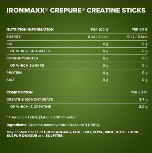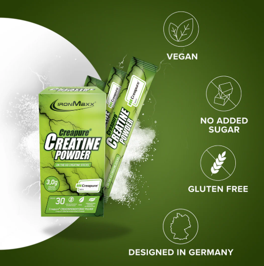IronMaxx® Creatine Monohydrate with Creapure®, ultra saf kreatini kullanışlı stick formunda sunar – sporcular için mükemmeldir.